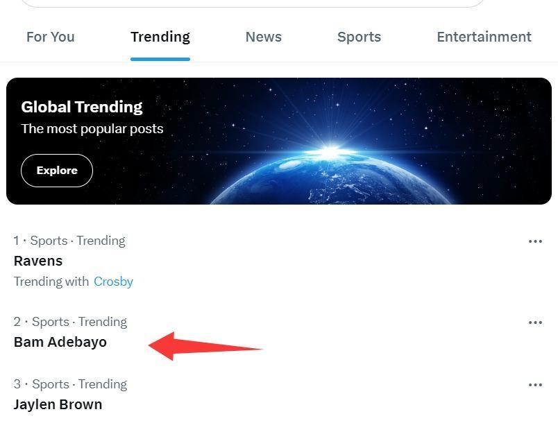 因为阿德巴约恐怖的首节表演,他也登上了全美第二热搜,第二节的他手感有所下滑,8中3+三分7中6拿到12分1篮板1抢断,半场已经拿到43分。