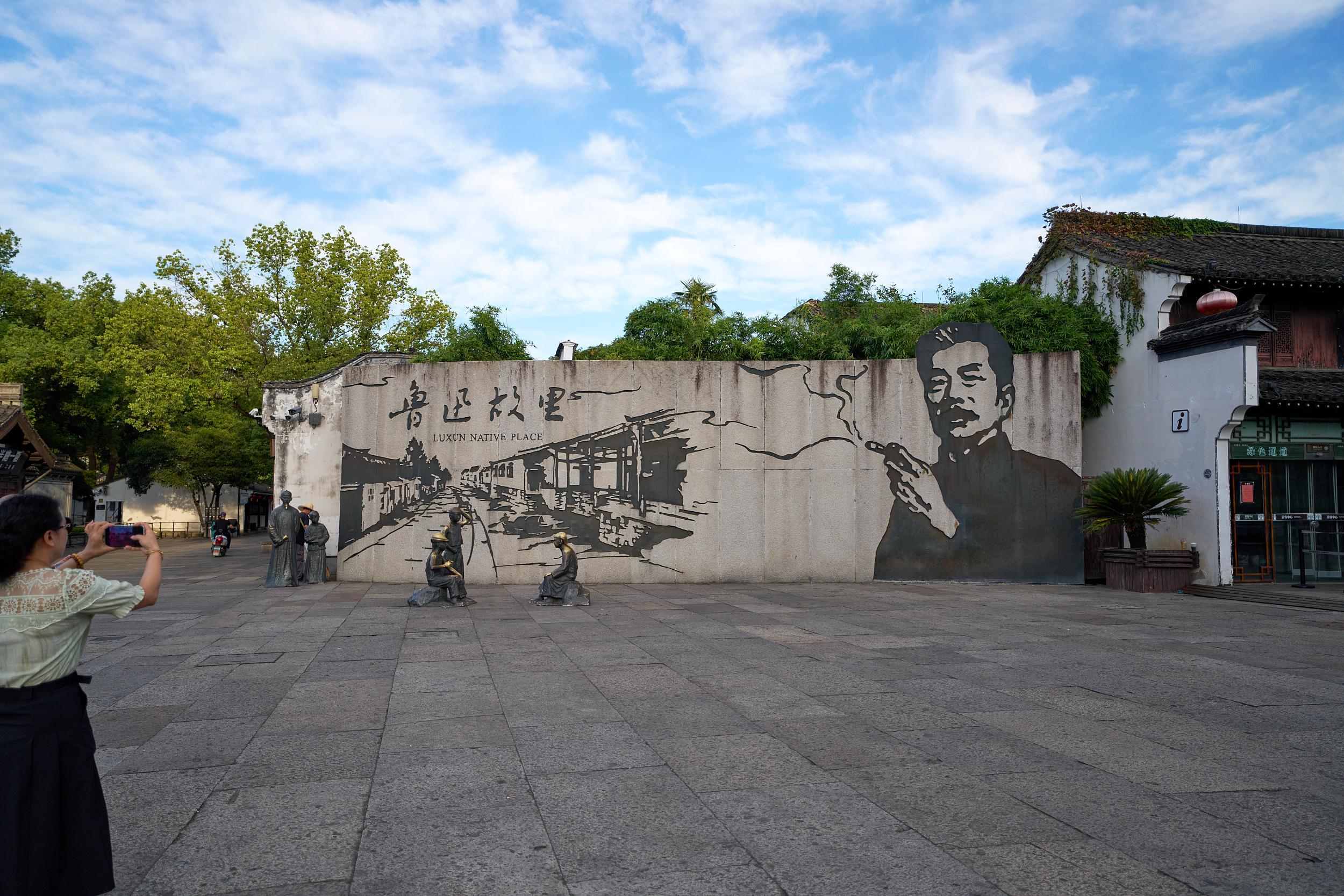 绍兴鲁迅纪念馆鲁迅夹烟墙画
